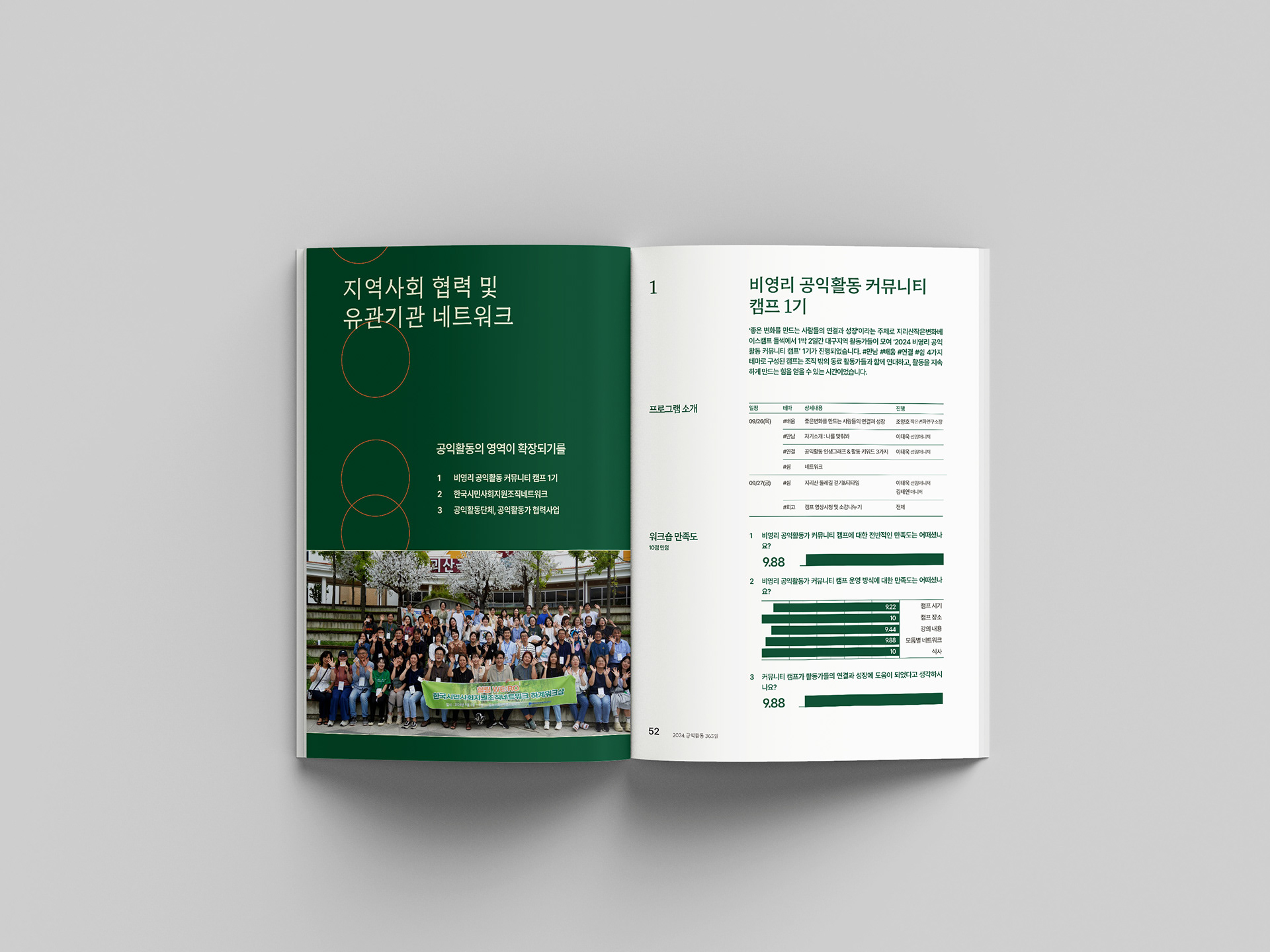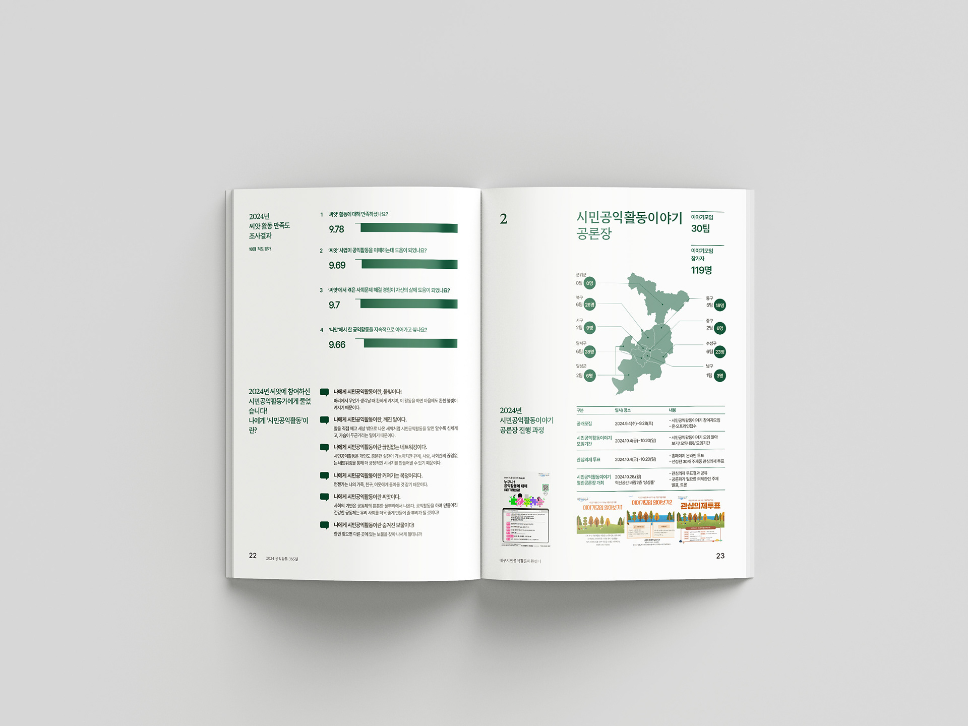 이 책자는 다양한 시민 참여와 변화의 흔적을 한눈에 조망할 수 있도록 구성된 공익활동 기록물로,
