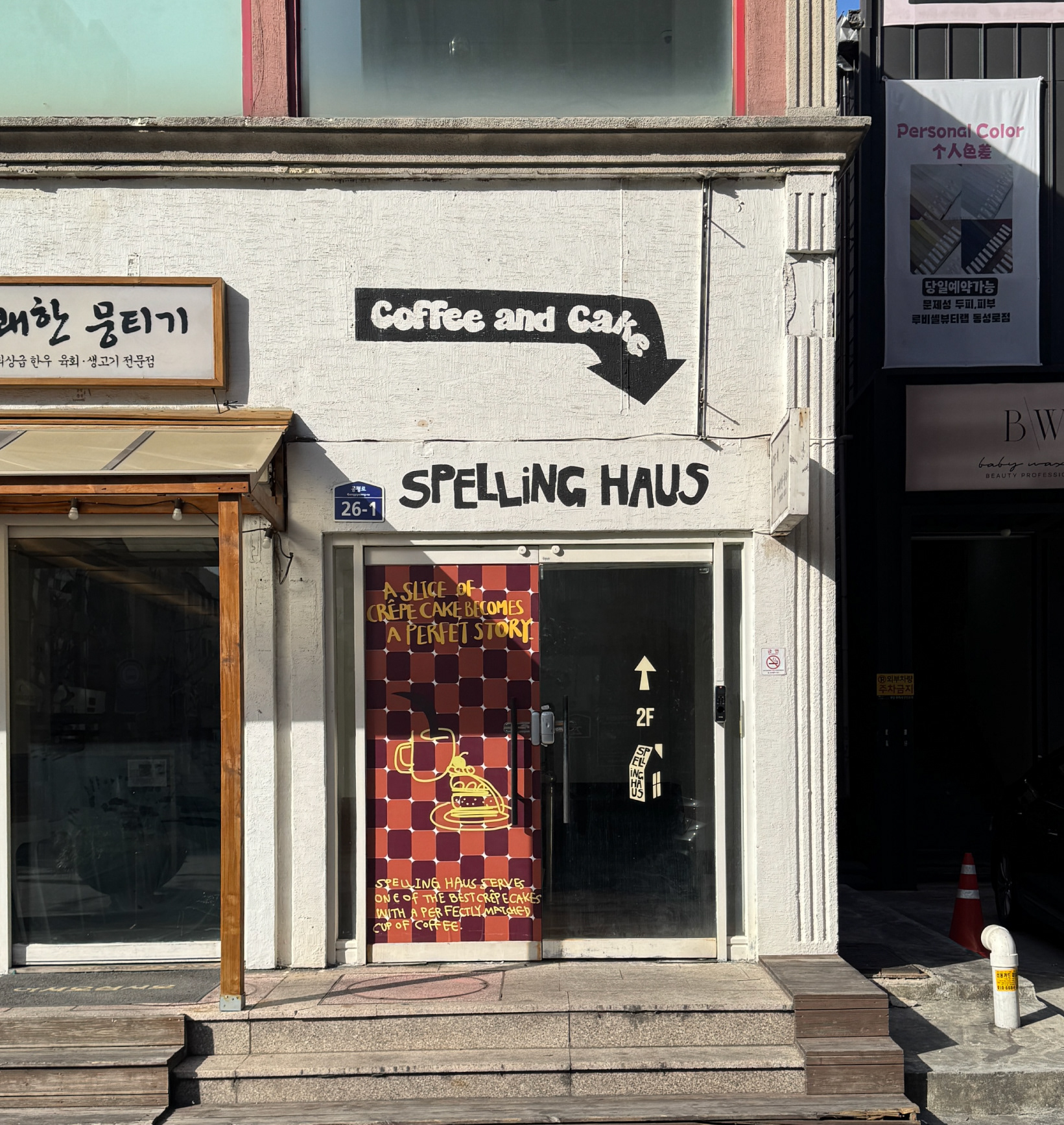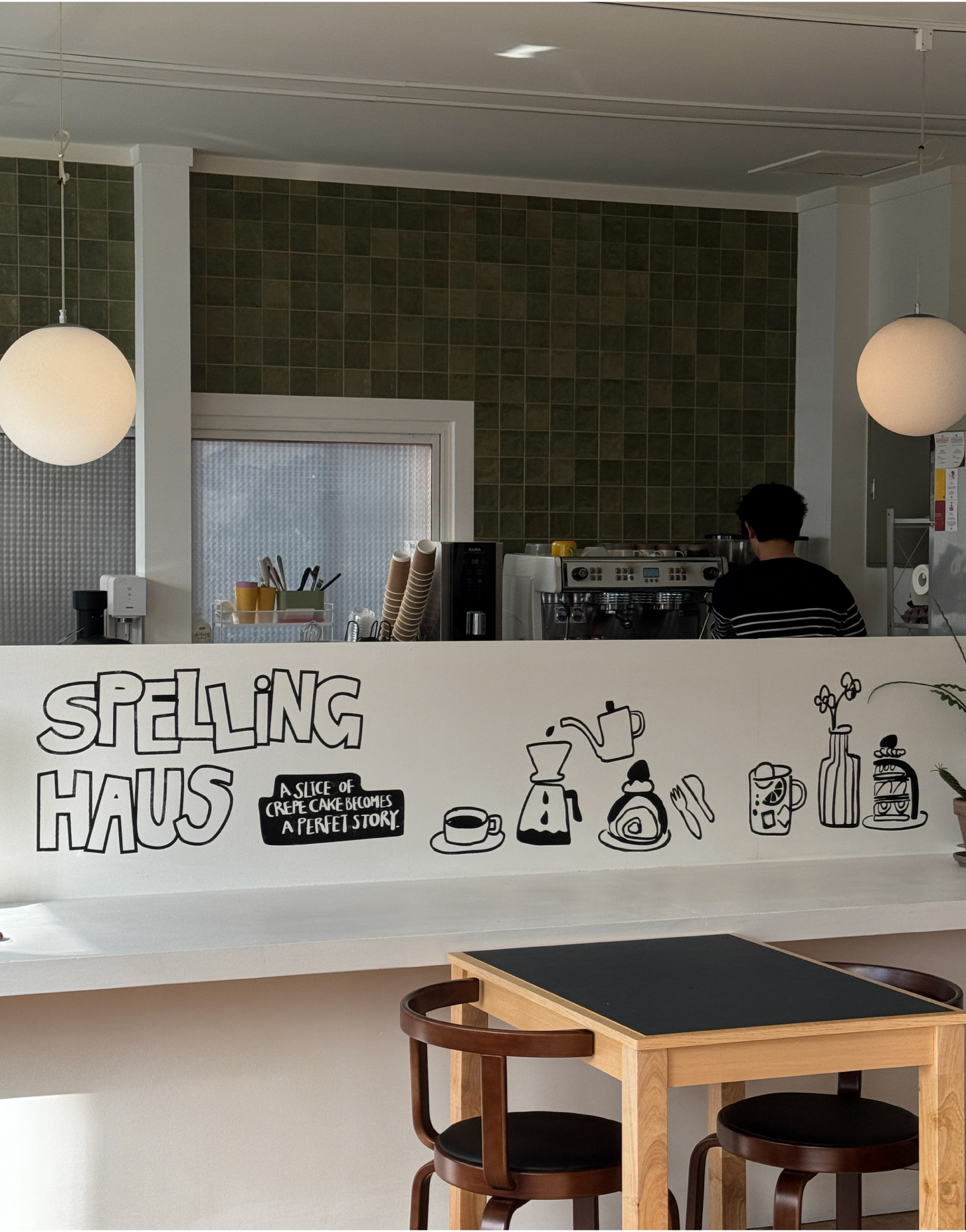 Spelling Haus is a concept café specializing in crepe cakes, with a name that means “a house that collects words and letters.”